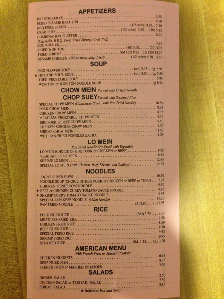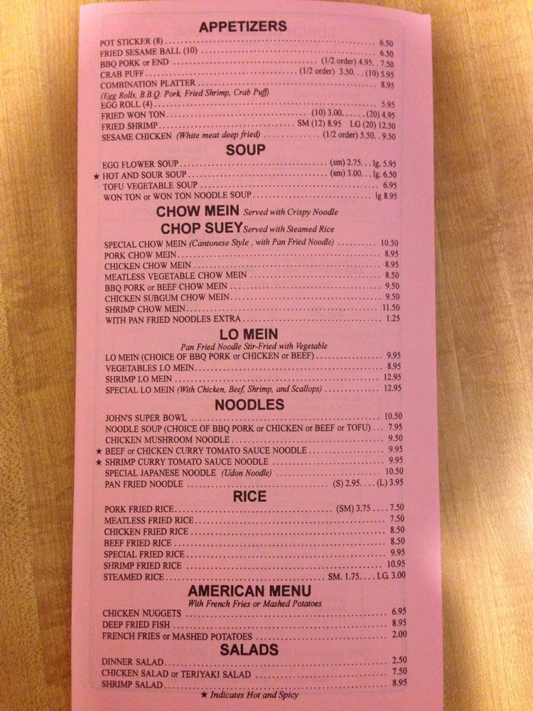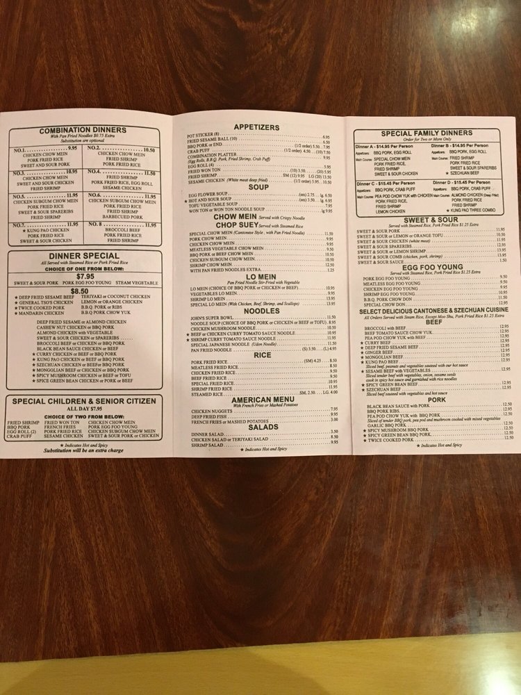 John's Chinese Restaurant Menu